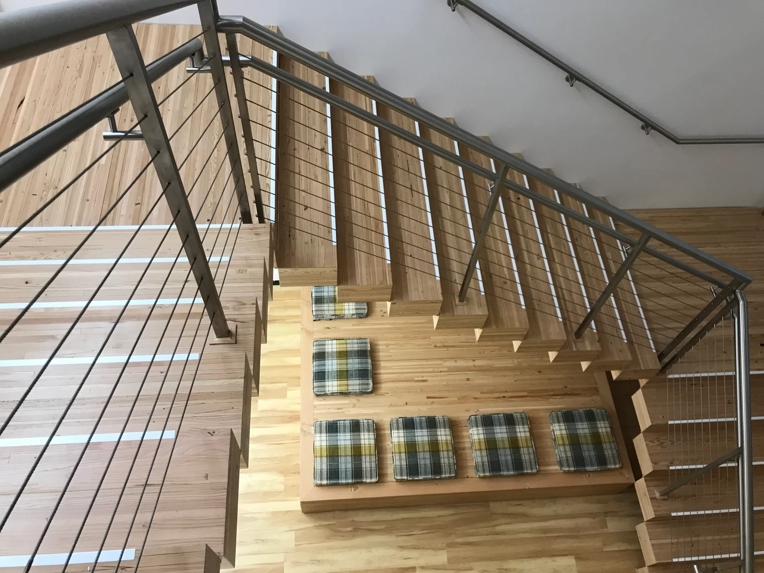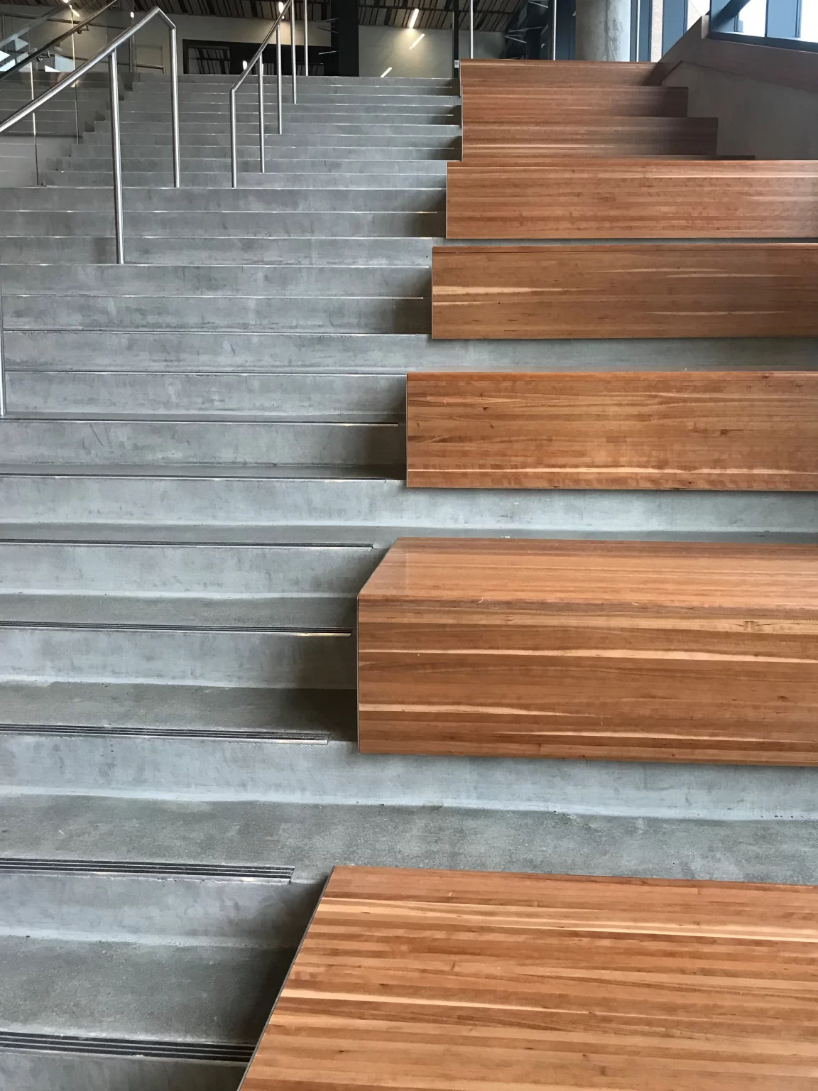Windfall offers custom design and manufacturing for wooden stair treads, landings, and stadium seating. Whether you’re in the conceptual stages or have a solidified design, we have the resources you need to see your project through to completion. Windfall offers several different wood species, solid wood and wood wrapped products, integrated lighting, and coordinated railing if applicable. Contact one of our experts to explore all of the possibilities for your design.